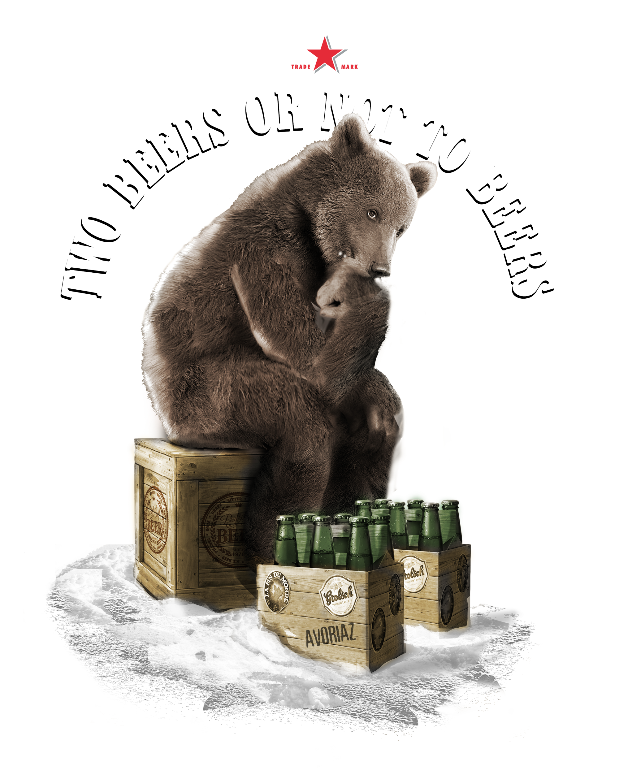 Un t shirt de la collection Life is too shirt pour les stations de ski. Ici un ours se pose une question existentielle sur les bords de la piste de ski, prendre ou ne pas prendre deux bières, tel est la question. Un savoureux détournement de la célèbre réplique " to be or not to be " de la piéce Hamlet de William Shakespeare.